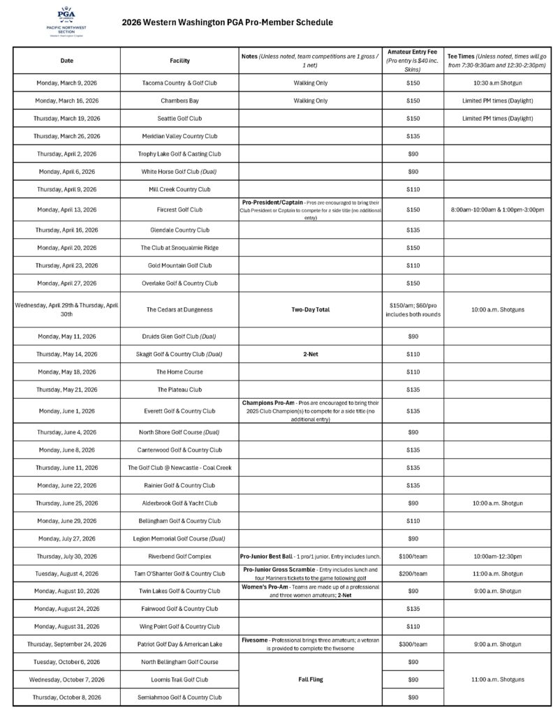 2026 WWPGA Pro-Member Schedule – Packet