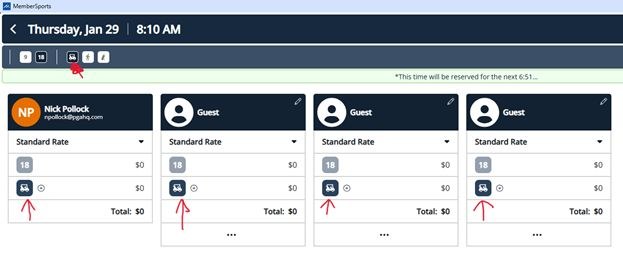 - Each tee time includes 4 players total (you + 3 guests)